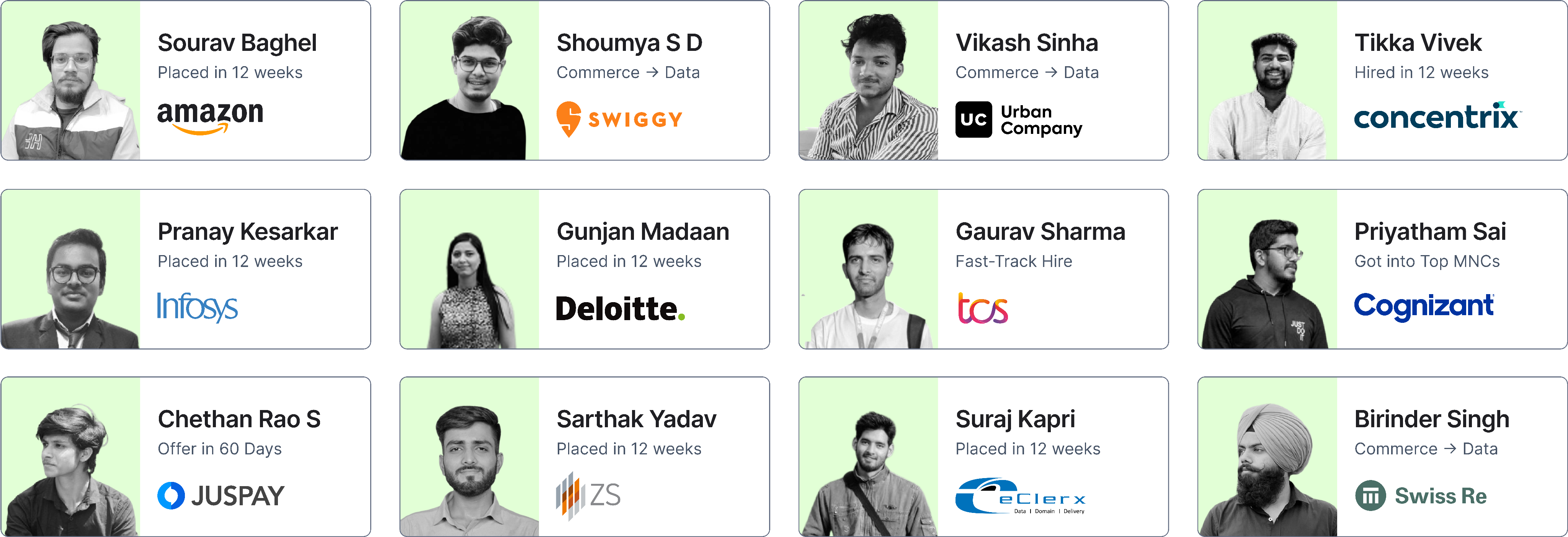 Our alumni work across leading brands. Many finish training in 12–16 weeks; some get placed in that window.